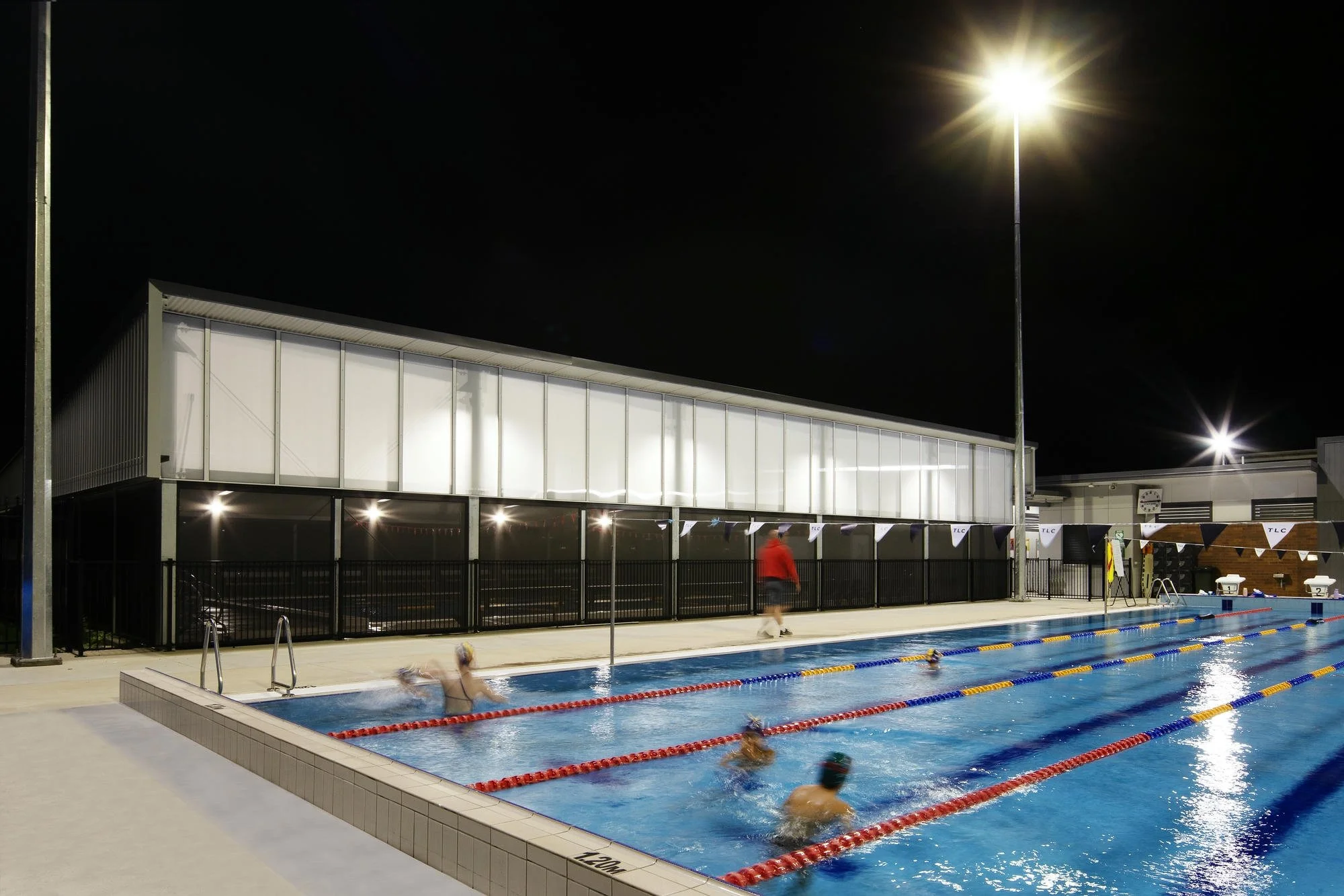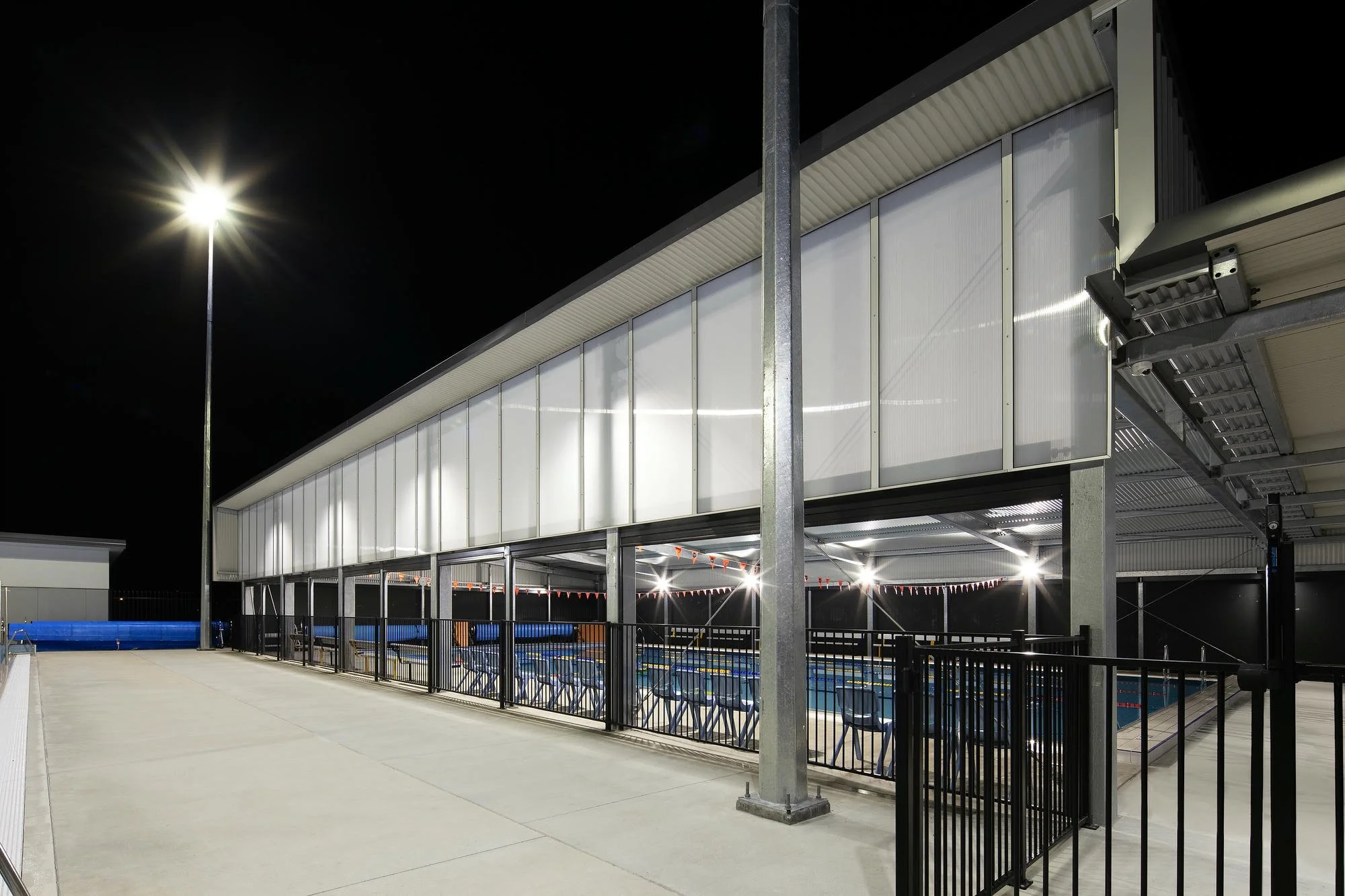 Stage 2 marks a significant milestone in that journey — introducing a purpose-built 20-metre indoor learn-to-swim pool, an expanded amenities building, and a roofed grandstand designed to seat nearly 500 spectators. Every element was carefully considered to create a cohesive and welcoming environment that supports both learning and community connection.